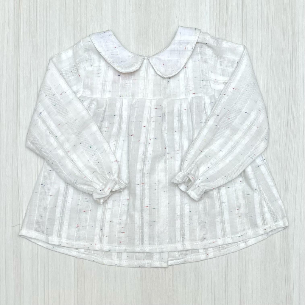 La camisa CAMILA está confeccionada en rattier de algodón. Es de mangas largas con detalle de elástico en el puño, generando un volado. Su recorte en el canesú hace que sea una prenda amplia y comoda para los más chiquitos. Tiene botones para prender en la espalda.