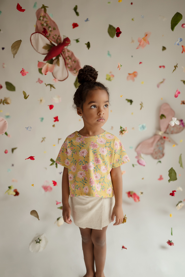 El short PIA es de lino. Viene con elástico en cintura. Simula ser pollera en su delantera. Súper cómodo, delicado y canchero!